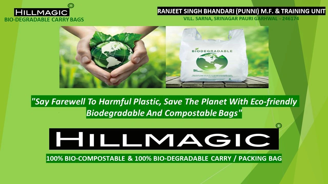 Hillmagic Industry is a Small Medium Business Firm founded in 2021, with its registered office located in Srikot Ganganali, Srinagar Garhwal, Uttarakhand and the factory is situated in Village Sarna, Srinagar Pauri Garhwal, Uttarakhand.Our Industry operates as a Training & Manufacturing Unit specializing in Biodegradable & Compostable Carry bags.Hillmagic possesses all the necessary certificates and authorization letters for Training and Sales operations.Hillmagic is an esteemed Government-approved project operating under the prestigious PMEGP (Prime Minister's Employment Generation Programme) scheme.Our Mission is to make Uttarakhand State plastic-free while also creating Employment Opportunities for Local Women and Youth, thus preventing them from leaving their roots and migrating to cities.